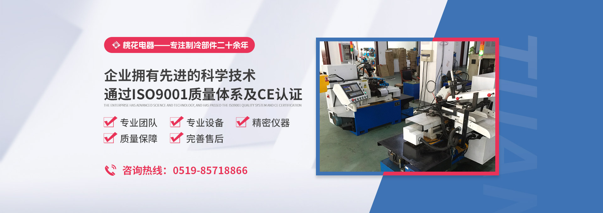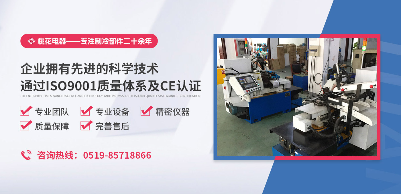 常州桃花電器有限公司地處中國長江“金三角”之稱的上海至南京高速公路、城際高鐵、常州高新經濟技術開發區路段,交通便利、技術力量十分雄厚。它是集研究、開發設計、制造和經營制冷核心部件的企業,主要生產中央空調上使用的制冷部件。產品有膜片式單向閥、鋼球式單向閥、四氟式單向閥、過濾器、消音器等系列。年生產制冷核心部件200萬只,其性能達到國際同類產品水平?! ∑髽I擁有先進的科學技術、國際先進的生產加工設備和精密的檢測儀器,并已通過ISO9001質量體系及CE認證,公司歷史悠久,2000年起,經過長期積累、沉淀,經驗豐富,從而保證了產品的高質量、高性能、高耐用性。企業產品在國內外市場具有較高的知名度,深受眾多中外品牌制冷客商的好評。主要客戶有約克、麥克維爾、美的、開利、特靈、頓漢布什、清華同方、天加等.并出口北美、歐洲、東南亞等地區。 高品質產品是企業的保證,周到服務是合作友誼的承諾,企業本著“求